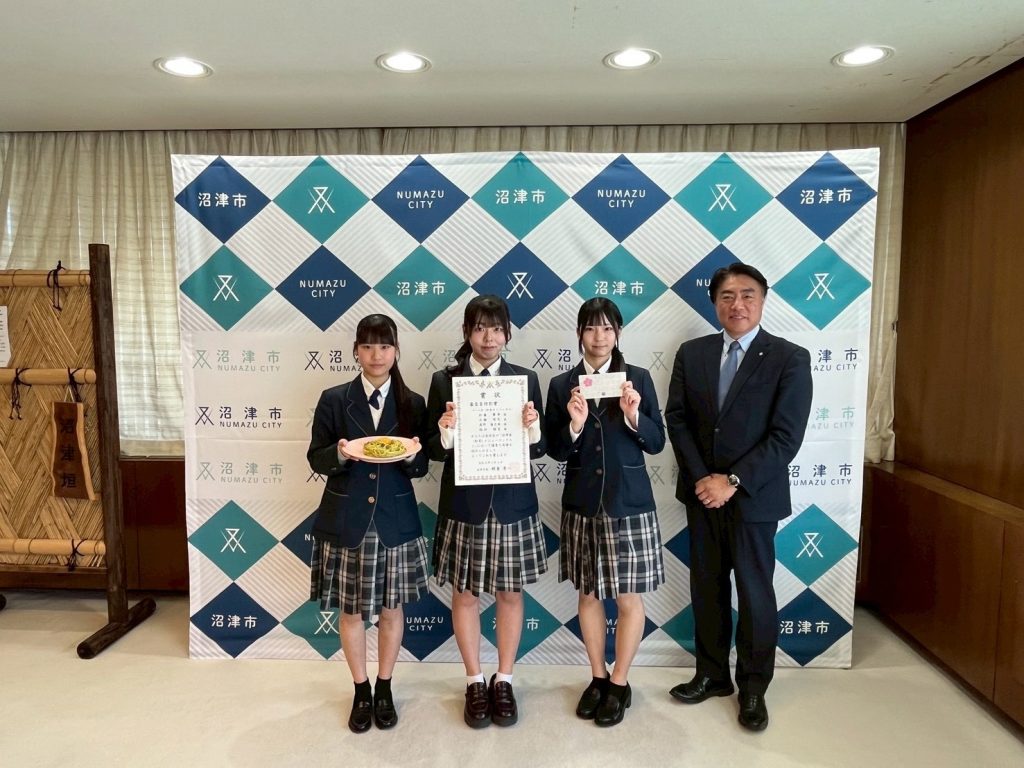 令和7年度は「沼津茶(粉末)を使ったメニュー」をテーマに作品を募集し、3点の入賞作品を決定し、令和8年3月4日には表彰式も行いました。